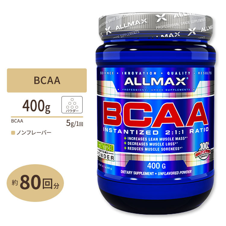 BCAAインスタンタイズ 2:1:1 無味 400g 80回分 ALLMAX (オールマックスニュートリション) 必須アミノ酸 スポーツ 本格派 高品質 トレーニング お取り寄せ
