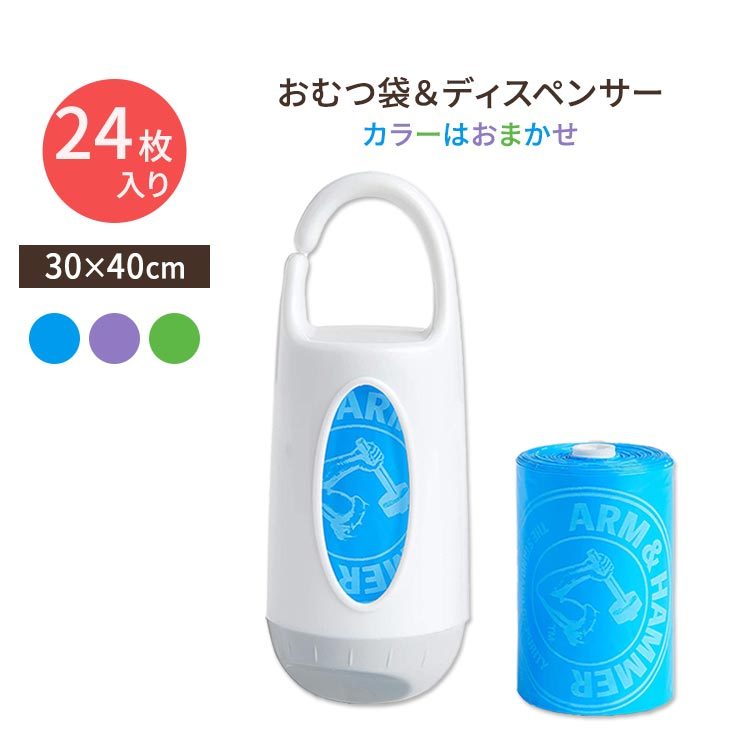 【隠れた名品】おむつ袋 24枚入り & ディスペンサー付き [袋サイズ 30cm x 40cm] ※色指定不可 Munchkin Arm and Hammer
