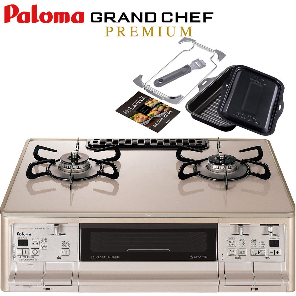 パロマ ガステーブル グランドシェフプレミアム ラクックグラン同梱 ガスコンロ プロパン用 都市ガス PA-A98WCJ ハイパーガラスコートトップ