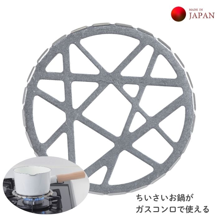 こちらをご家庭のガスコンロやカセットコンロで使用していただくことでケトルやポット等の小さめのサイズのお鍋を安定してご使用頂けます。