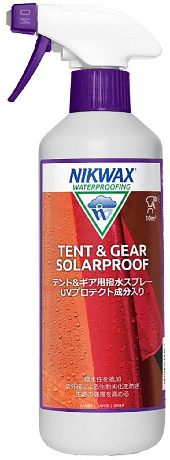 ニクワックス NIKWAX テント&ギアソーラープルーフ 500ml EBE3A2 アウトドア テント、ザック用の強力撥水剤。紫外線から生地を守ります。ハンディスプレータイプ。透湿性の生地には使用できません。ニクワックスは地球環境への影響を最小限に抑えながら、ウエアやシューズ、ギアを洗浄、耐久撥水加工できる画期的な製品です。地球温暖化などの原因となるガスや人体に有害な石油系溶剤を含みません。