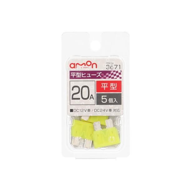 エーモン amon 3671 平型ヒューズ 20A 約19×19×5mm 20A×5個入