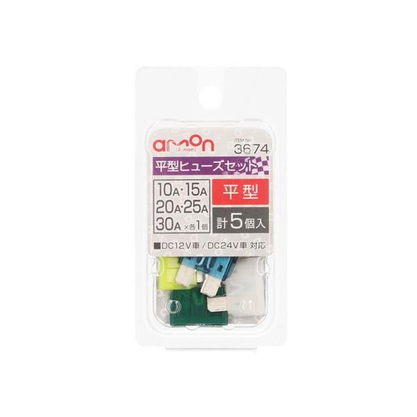 エーモン amon 3674 平型ヒューズセット 10/15/20/25/30A 約19×19×5mm(10・15・20・25・30A ×各1個計5個入)