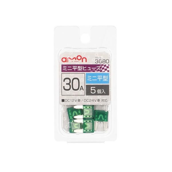 エーモン amon 3680 ミニ平型ヒューズ 30A 約 11×16×4mm 30A×5個入