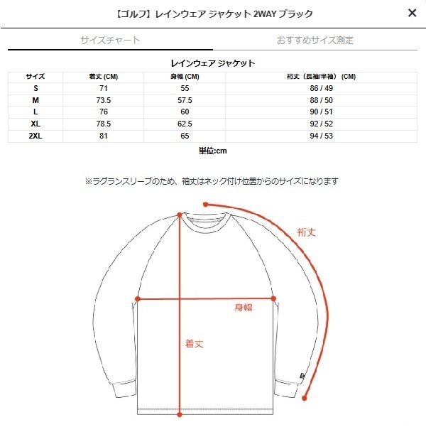※ラグランスリーブのため、袖丈はネック付け位置からのサイズになります。