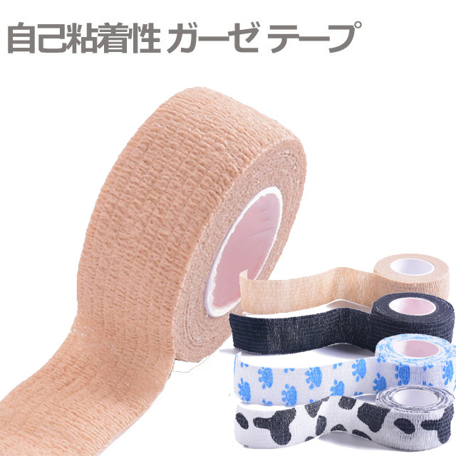 ハサミがなくても、簡単に手で切ることができて便利!テープ同士がくっつく自着タイプ。肌には粘着せずに、テープ同士は何度もくっつくため、テーピングの巻き直しも簡単です。