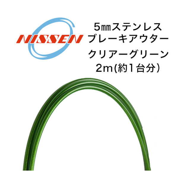 日泉ケーブル 5mmステンレスブレーキアウター クリアーグリーン NISSEN CABLE 自転車 ケーブル