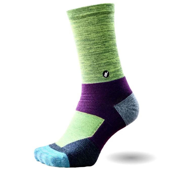 高品質メリノウール使用、甲部のメッシュ構造、つま先左右非対称設計