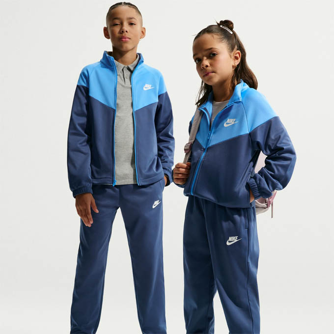 ナイキ YTH NSW DF トラックスーツ PK FZ ジュニア Dri-FIT トラックスーツ Nikeにとって、トラックスーツはマストアイテム。このツーピースのセットアップには、軽量のニット素材を使用。速乾性に優れたDri-FITテクノロジーを取り入れ、涼しく快適な着心地が持続します。 Nike Dri-FITテクノロジーが、肌から汗を逃がしてすばやく蒸発させ、さらりと快適な状態をキープ。 パンツにはドローコード付きの伸縮性ウエストバンドを採用。最適なフィット感に調節可能。