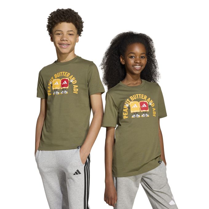 素材にソフトなコットンを使用してぴったりのフィット感があり、フロントにあしらった、おいしいピーナッツバターやジェリーにインスパイアされたグラフィックが特徴。
