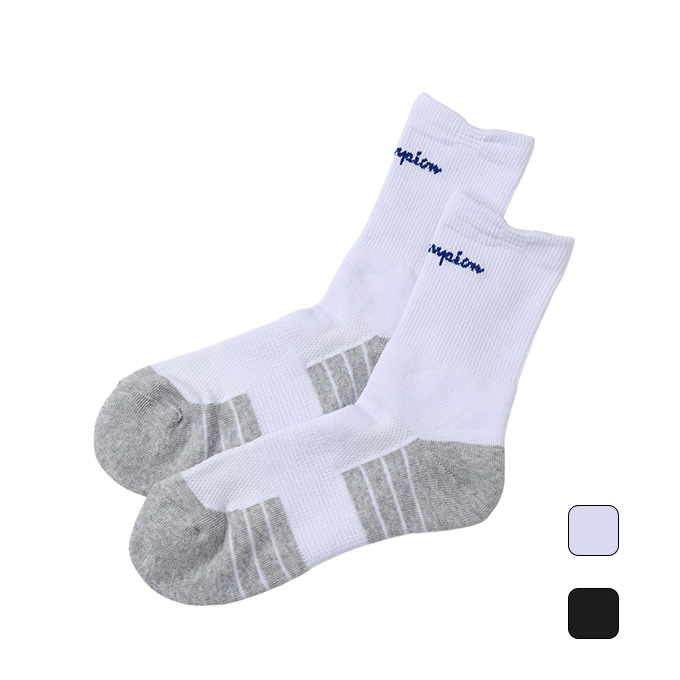 つま先とかかとに従来品と比べて約2倍(当社比)の摩耗強度を持ったタフなミドルレングス丈のソックスです。抗菌防臭機能に加え、アーチサポート機能によってサポート力も向上。足甲部分にメッシュ素材を使用して通気性も高めています。フロントにChampion(チャンピオン)ロゴをジャカードで入れています。