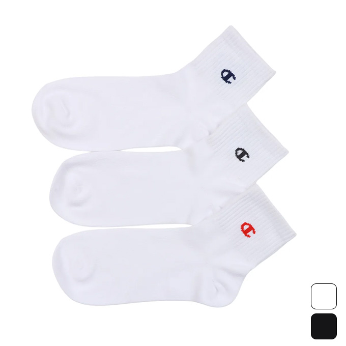 3足組クォーターレングス丈ノンパイル仕様のソックスです。外側にはChampion(R)(チャンピオン)ロゴを入れたアイキャッチな大きなハート刺繍、内側にはワンポイントのCロゴを編み、コーディネートに合わせて履き方を変えられる2wayデザイン仕様です。異なる刺繍色・Cロゴカラーの同色アソート。