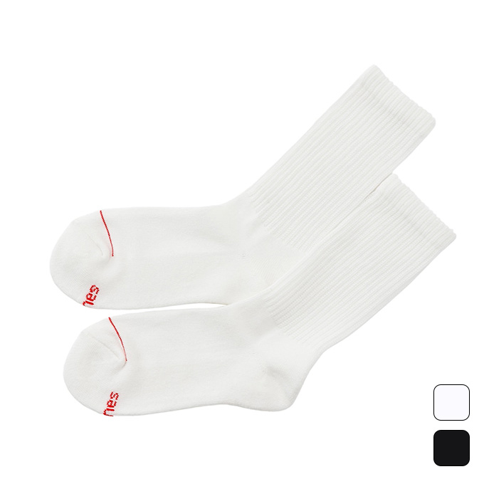 2足組クルー丈ハーフパイル仕様のソックスです。履き口部分が締め付けにくく、柔らかい着用感が特長のリブ編み設計のソックスです。つま先にラインのアクセント、足裏にさり気なくアクセントカラーでHanes(R)(ヘインズ)ロゴを入れました。