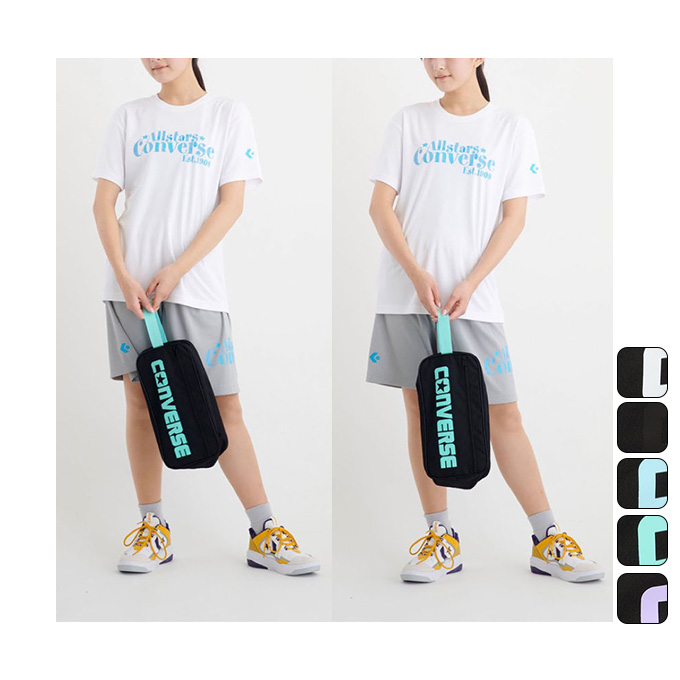 従来品に比べ小ぶりのMサイズ。スポーツシューズを入れるのに重宝します。バスケットボールの収納可能です。コンバースのロゴがポイントです。