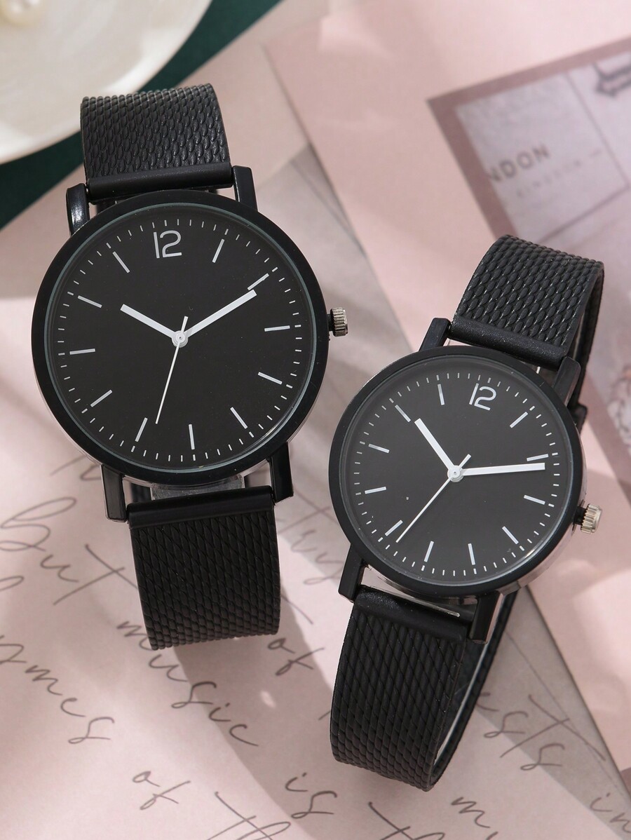 腕時計 ペアウォッチ カップル用腕時計 黒色 プラスチックバンド 2本セット カジュアル スタイル