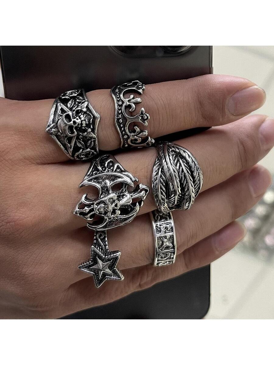 リング メンズ セット 6個セット アジャスタブル ヴィンテージ シルバー パンク オープンリング、ユニセックス、重ね付けに適し、