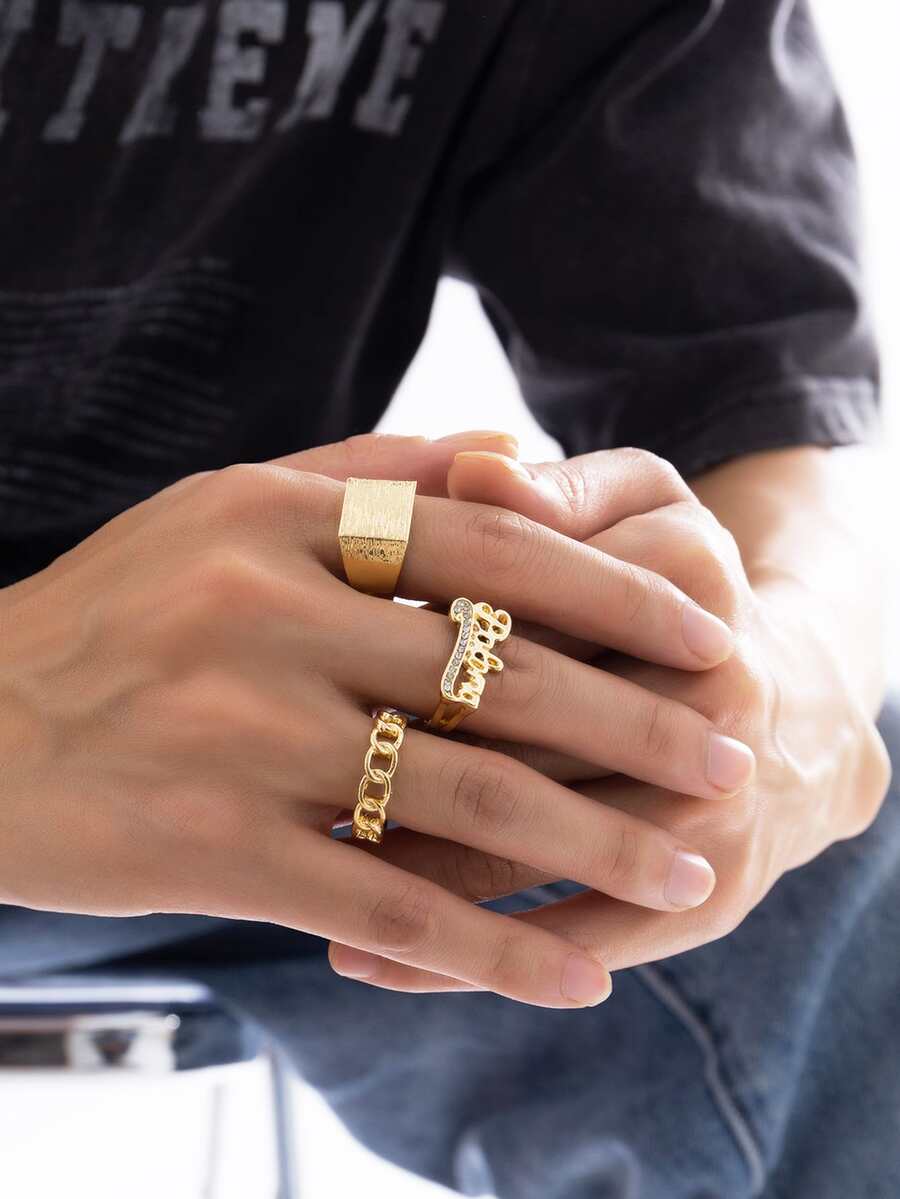 リング メンズ セット ファッショナブルで人気のある 3 個のメンズ ラインストーン ディテール リング 合金 ジュエリー ギフト