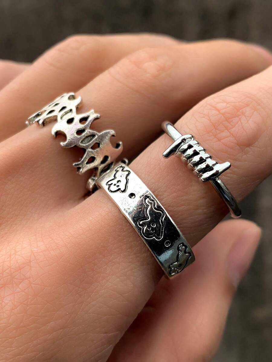 リング メンズ セット ファッショナブルで人気のある 3 個のメンズ フレーム装飾リング 合金 ジュエリー ギフトやスタイリッシュ