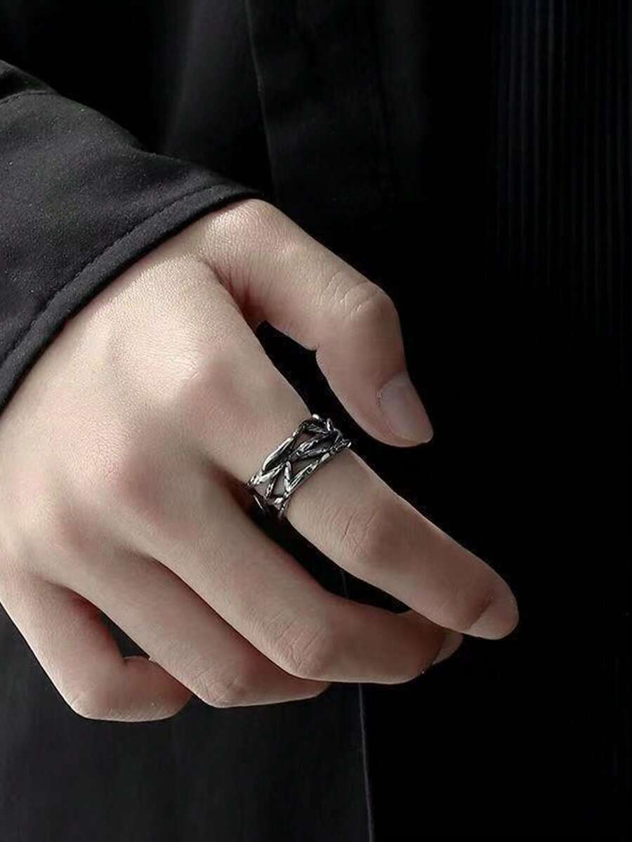 リング メンズ セット Y2K シルバー トーンリング エッジィ スパイク 有刺鉄線リング 幾何学的 オープン 調整可能 ゴシック