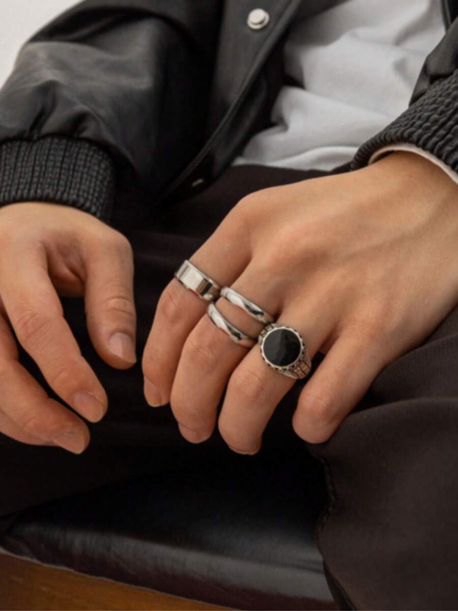 リング メンズ セット ファッショナブルなパンクスタイル スパイラル スター リングセット 4個入り、カジュアルな日常着用メンズ用