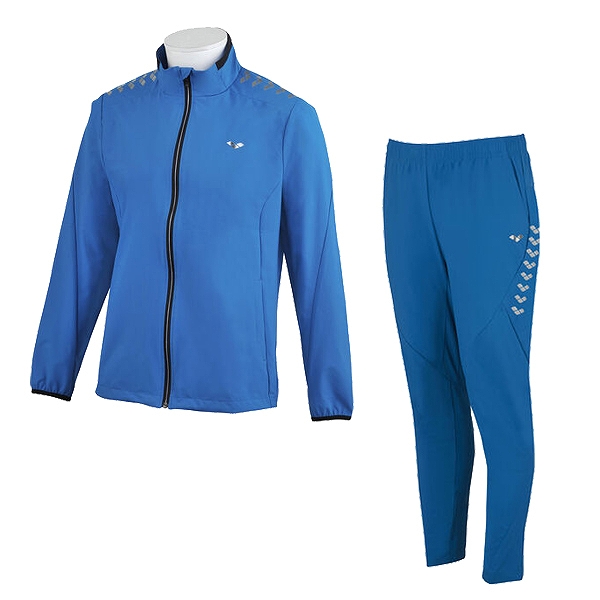 アリーナ独自の身体にフィットするアクアスパイラルパターンを採用し、スリムなシルエットを実現したウィンドブレーカーの上下セット。