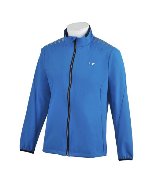 アリーナ独自の身体にフィットするアクアスパイラルパターンを採用し、スリムなシルエットを実現したウィンドブレーカーのジャケット。