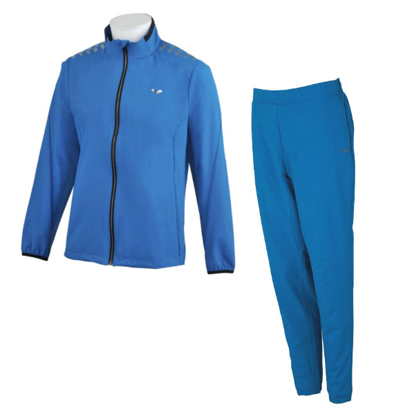 アリーナ独自の身体にフィットするアクアスパイラルパターンを採用し、スリムなシルエットを実現したウィンドブレーカーの上下セット。