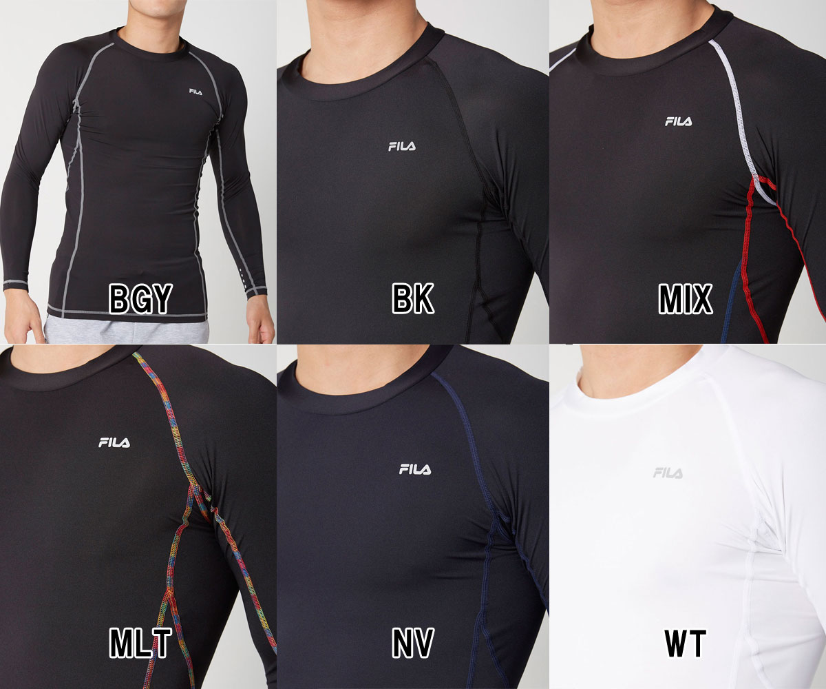 メール便OK FILA(フィラ) 448124 メンズ クルーネック 長袖 ソフトコンプレッションインナー スポーツインナーウェア