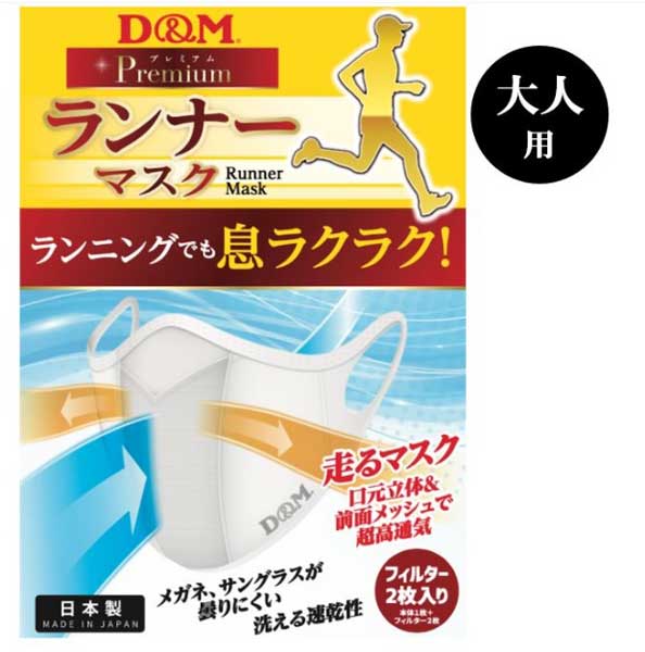 ランナーマスク大人用 白・黒 D&M ランニングでも息ラクラク! 外部のホコリ・飛沫拡散を防ぐ特殊フィルター付き スポーツマスク ディーエム