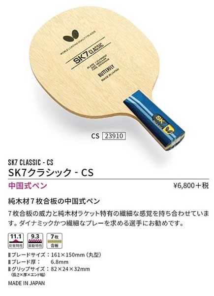 SK7クラシック 中国式ペンラケットCS バタフライ 23910