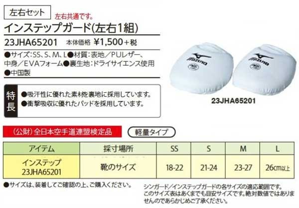 インステップガード(左右1組) ミズノ 空手用 (公財)全日本空手道連盟検定品