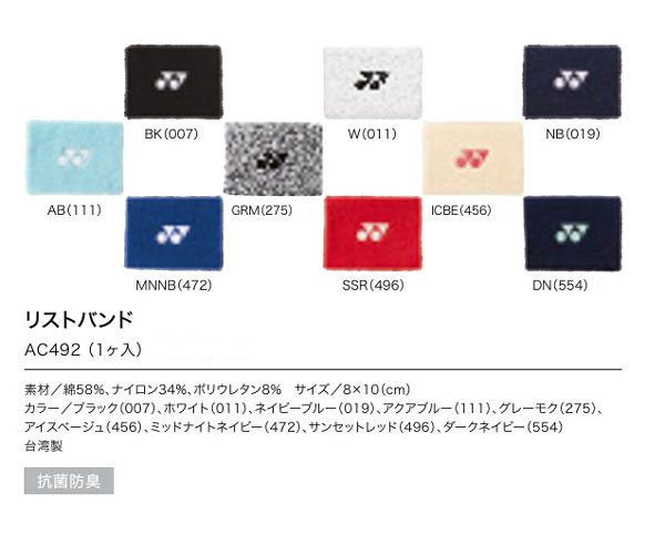 リストバンド(1ヶ入り) AC492 ヨネックス 抗菌防臭