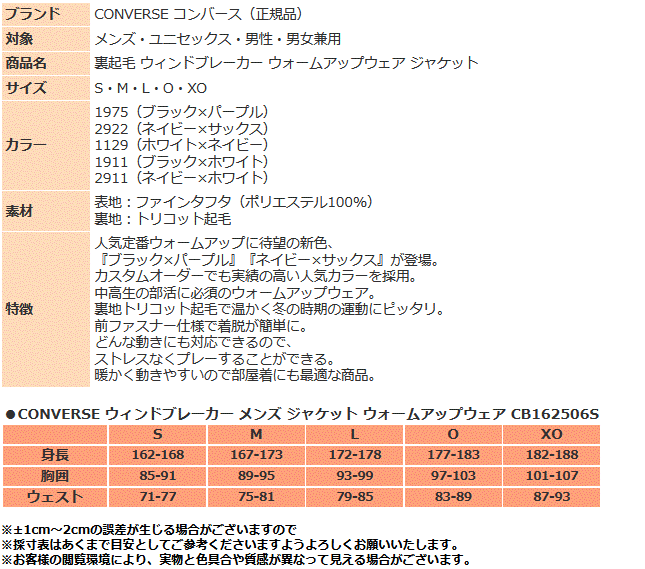 コンバース ウインドブレーカー メンズ ジャケット バスケ 裏起毛 ウォームアップシャツ CB162506S 撥水 透湿 上着 バスケットボール