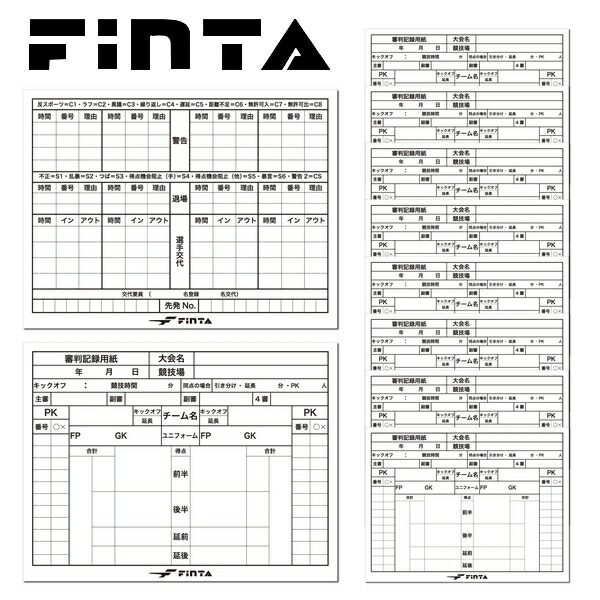 【FINTA-フィンタ】 サッカー用品 フットサル用品 審判用品 レフェリー用品 レフリーグッズ 記録用紙 スコアペーパー