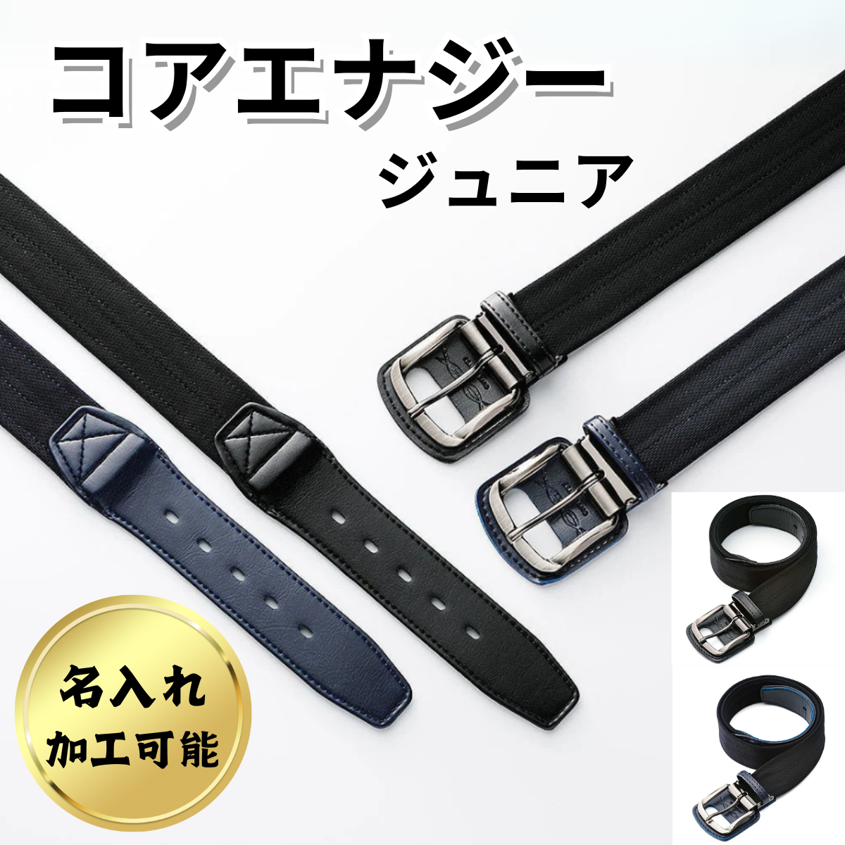 コアエナジー ジュニア jr 野球 ベルト ブラック ネイビー 圧着シート 名入れサービス 子ども CGB0307 コアテクノロジー 黒 紺 フリーサイズ プレゼント ギフト