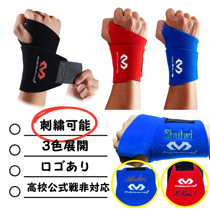 マクダビッド ロゴあり リストサポート 手首 サポーター 刺繍加工可能 名前 名入れ ネーム加工 刺しゅう 左右兼用 黒 赤 青 M451F 野球 ソフトボール
