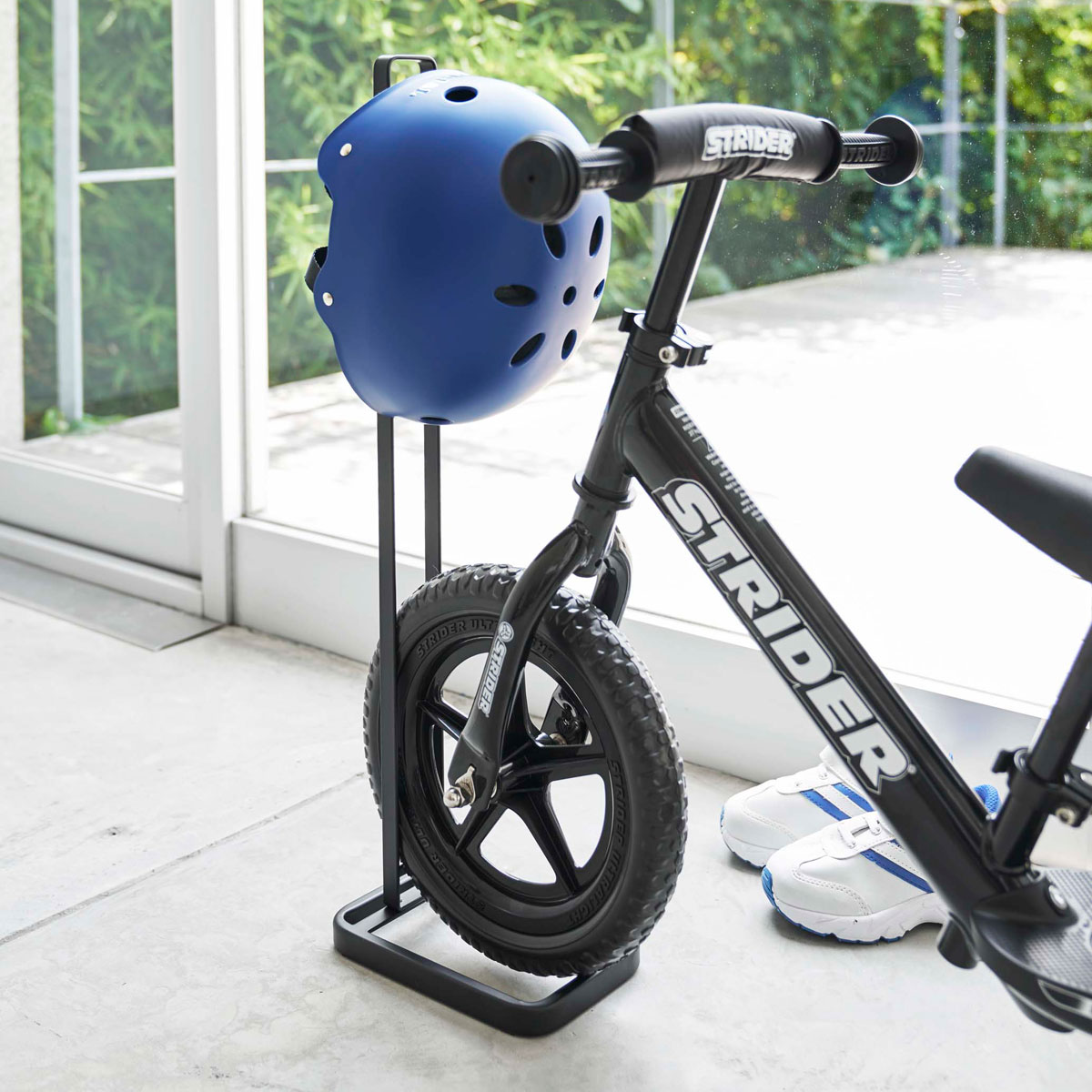 自転車のトレーニングとして遊びながらバランス感覚や脚力が身につく、子どもに人気のストライダーなどのペダルなし自転車。TOWERの専用スタンドなら、倒れずに自転車を収納できます。壁にもたれかかる不安や、壁面への穴あけの手間もなく、ペダルなし自転車を自立させて収納できます。