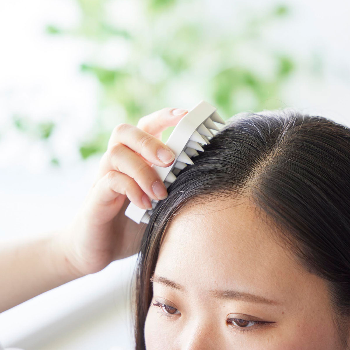 皮脂詰まりと頭皮全体をケアするマッサージブラシです。マグネットでお風呂場の壁に簡単に収納できます。