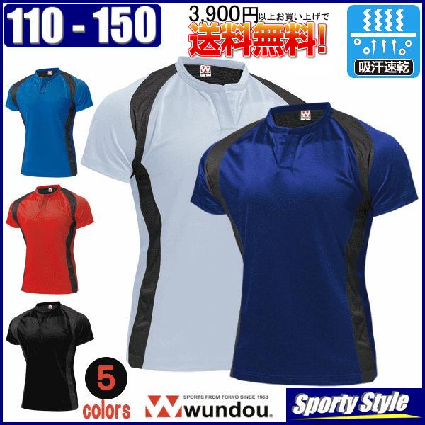 ラグビーシャツ半袖 ジュニアサイズ ラグビージャージ ラガーシャツ 練習着 襟なし 速乾 白紺青赤黒 サイドライン キッズ 子供 幼児 当日発送可 wundou P3510