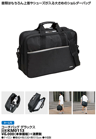 書類はもちろん上着やシューズが入る大き目のショルダーバッグ。