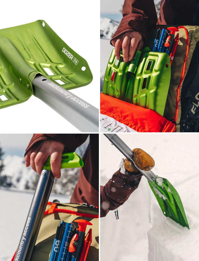 BCAショベルは石突きや頸状部がなく、パックの中で平らになり、他のバックカントリーギアを収納するスペースが確保できます。