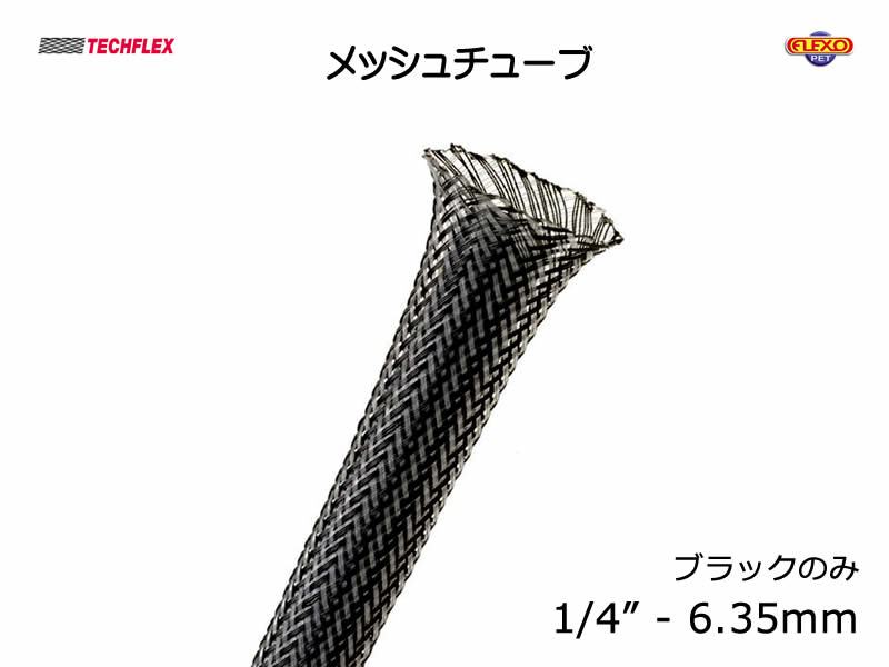 TECHFLEX製 メッシュチューブ・保護チューブ ブラック 1/4 切り売り