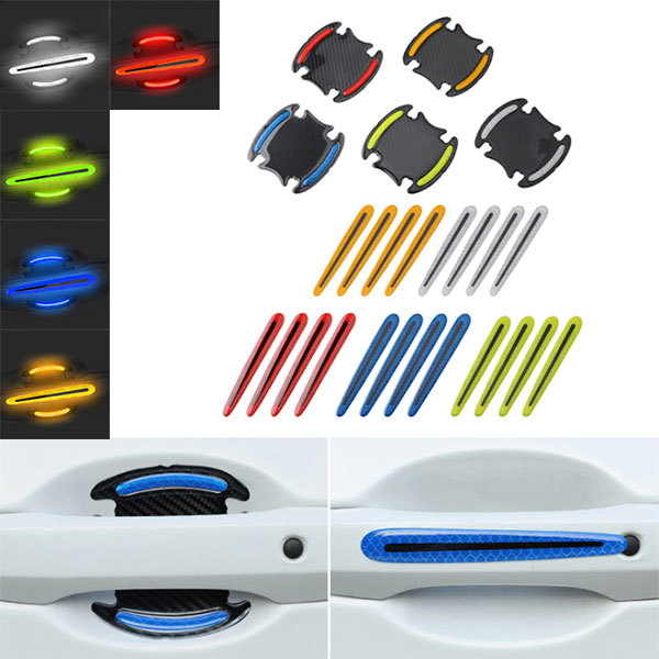 ひっかき 傷 防止 ドアハンドル プロテクター 夜間反射 8枚セット ドア ガード ステッカー シート フィルム 汎用 外装 カー用品