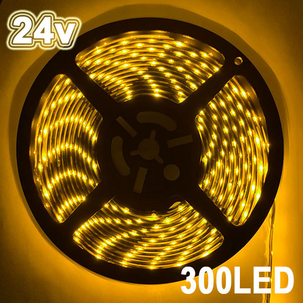 LEDテープライト 300連 24v 防水 5m イエロー正面発光 ベース選択可 送料無料