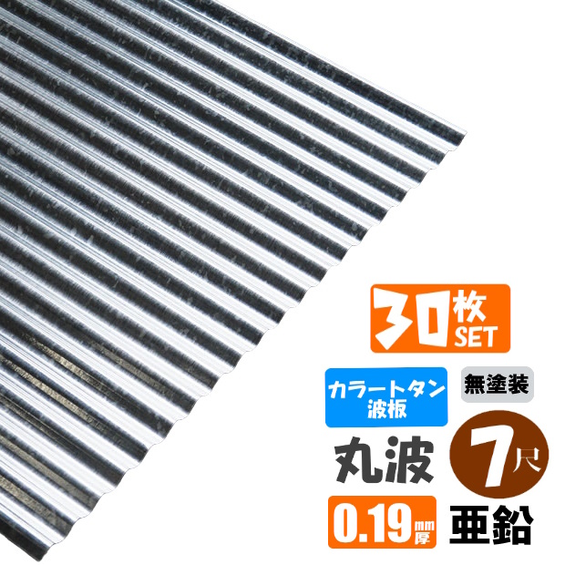(送料無料)(法人・個人事業主(屋号あり)様限定商品)手降し不可 カラートタン波板 30枚セット 丸波 7尺(2130mm) 厚み:0.19mm