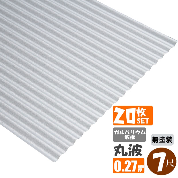 (送料無料)(法人・個人事業主(屋号あり)様限定商品)手降し不可 ガルバリウム波板 20枚セット 丸波 7尺(2130mm) 厚み:0.27mm