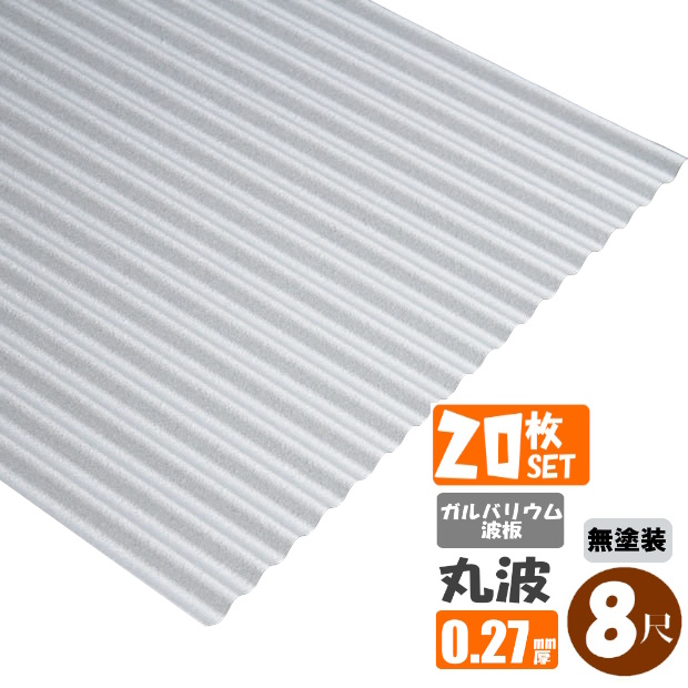 (送料無料)(法人・個人事業主(屋号あり)様限定商品)手降し不可 ガルバリウム波板 20枚セット 丸波 8尺(2430mm) 厚み:0.27mm