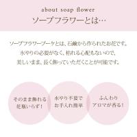 商品説明:ソープフラワーは石鹸で作られているお花、本物のお花と見間違えるほどリアルに作られていて、お値段の割に豪華です。お手入れ不要でアロマが香る、そして華やかで長持ちと、近年人気上昇中のギフトです。 (※)石鹸で出来ていても汚れを落とすことを目的としたものではございません。観賞用としてのご利用になります。