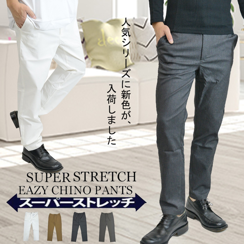 【閉店セール】スーパーストレッチ チノパンツ 強ストレッチ イージ-パン メンズ スキニー テーパード ホワイト モカ チャコール ツインチェック M L LL
