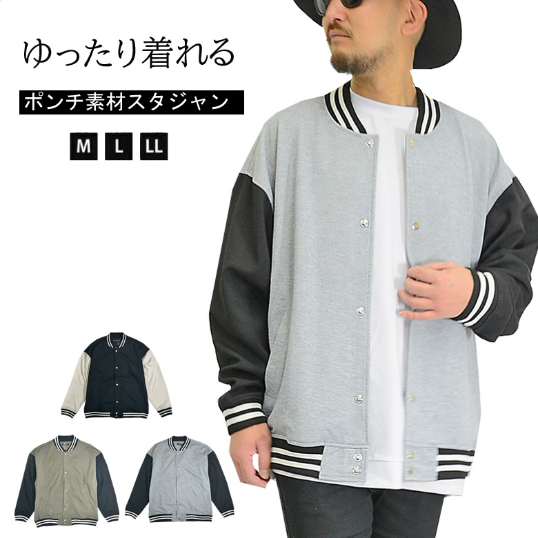 【閉店セール】メンズ ジャケットオーバーサイズ ポンチ スタジャン ベージュ ブラック グレースタジャン ビックシルエット M L LL メンズ スタジャン